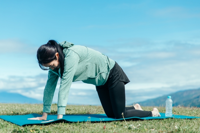 背中と腰を伸ばす「キャットアンドカウ」