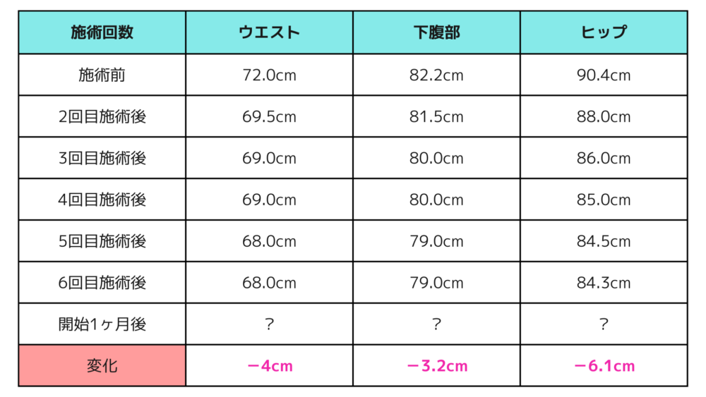 当院の痩身マシンは6回施術でその部位の効果が現れるので、1週間に1度のペースで計6回受けていただくことをおすすめしております。