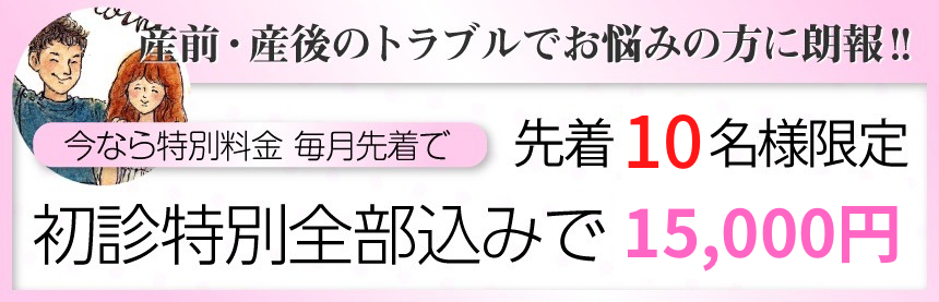 産前産後のトラブルで悩んでいるのでしたら、ぜひ当院へお越しください。