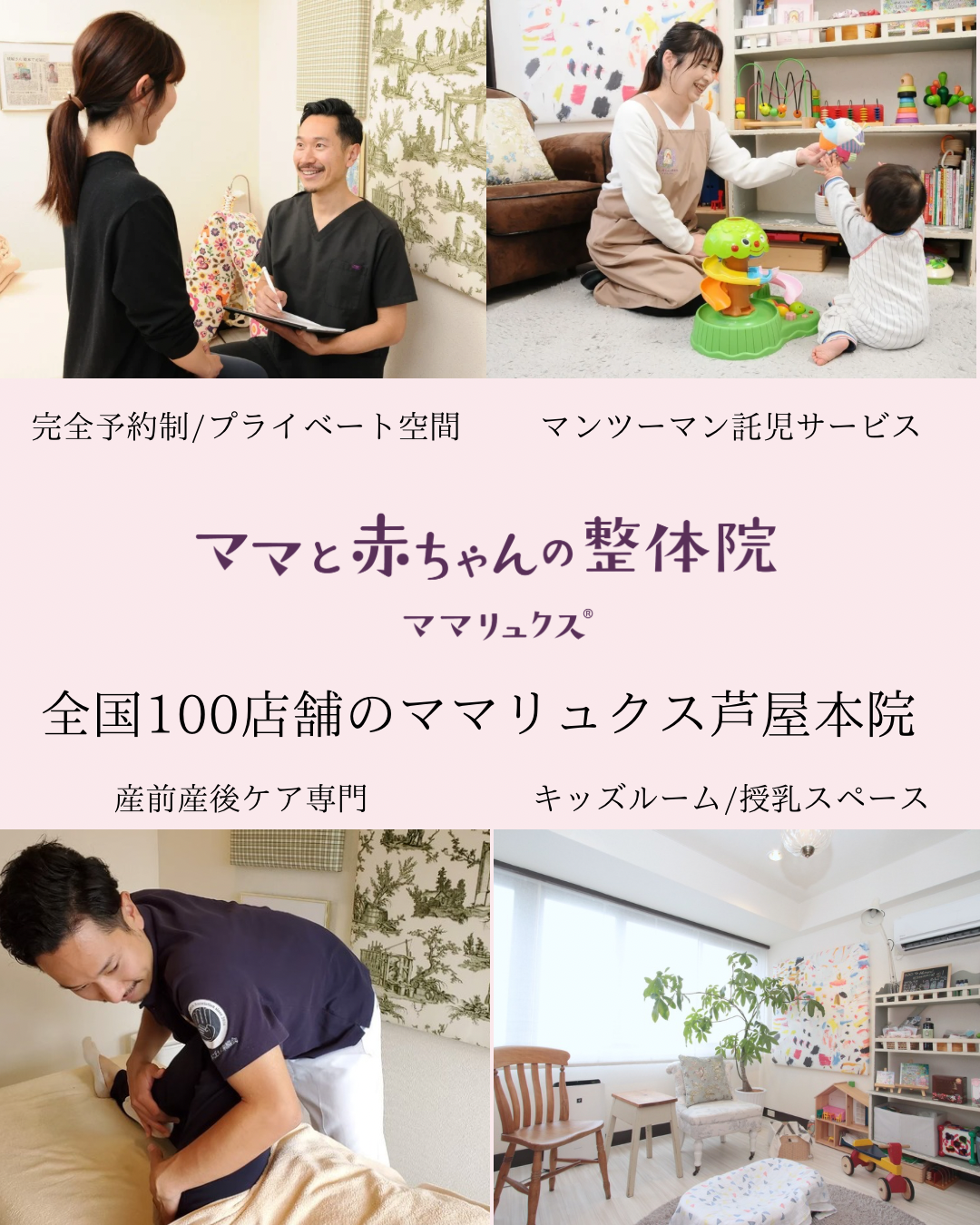そうして10年前に兵庫県の芦屋市と西宮市・神戸市のママ達のために赤ちゃんと一緒に通える整体サロン ママリュクスを開院しました。