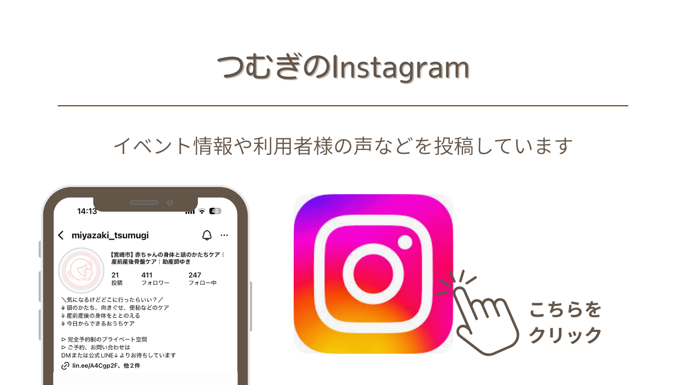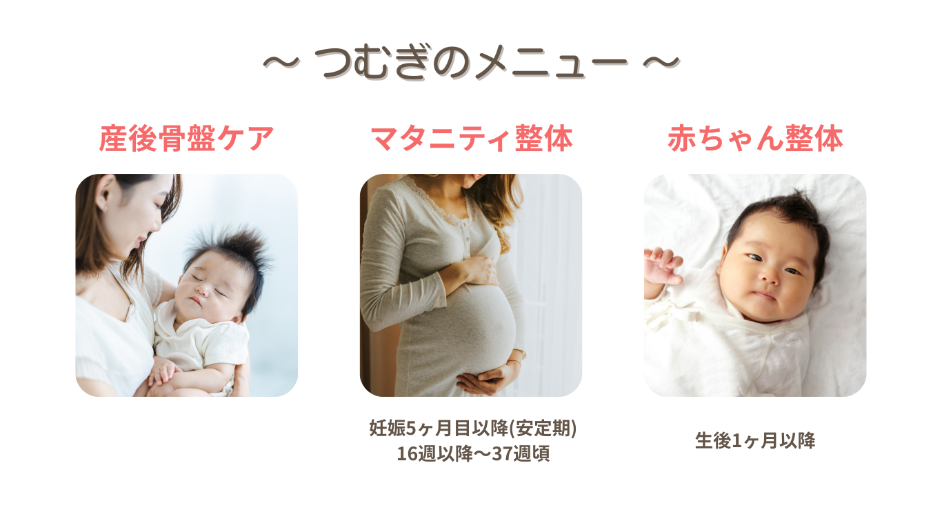 産前産後のトラブルがありましたら、ぜひ一度体験にいらしてください。お待ちしています。