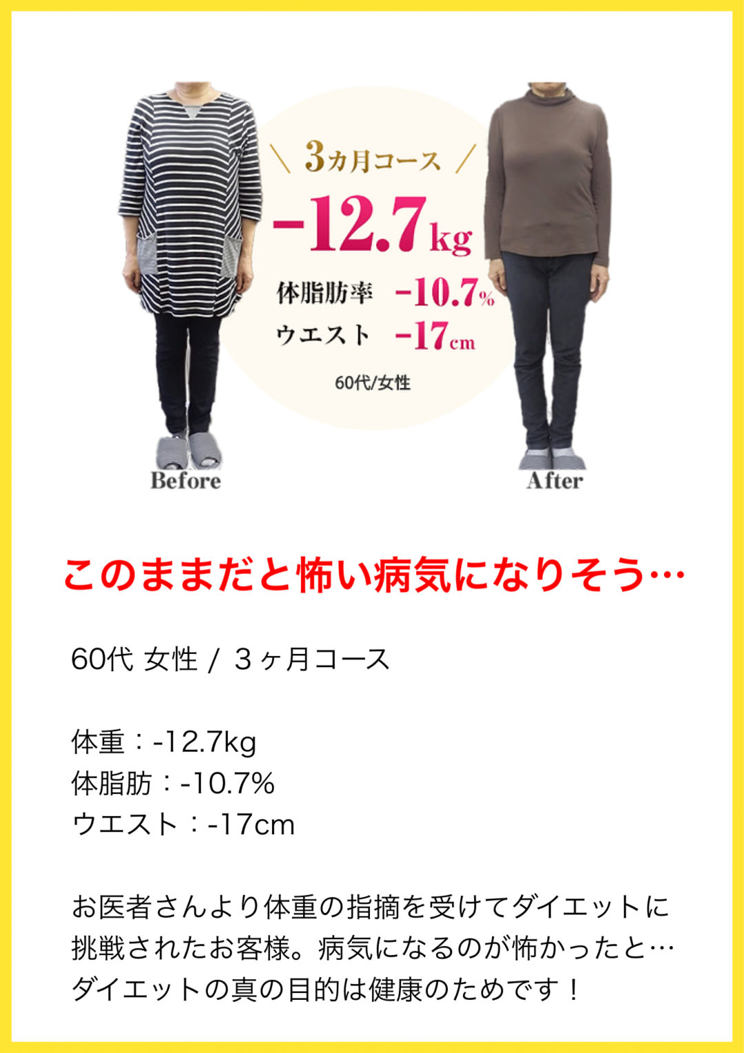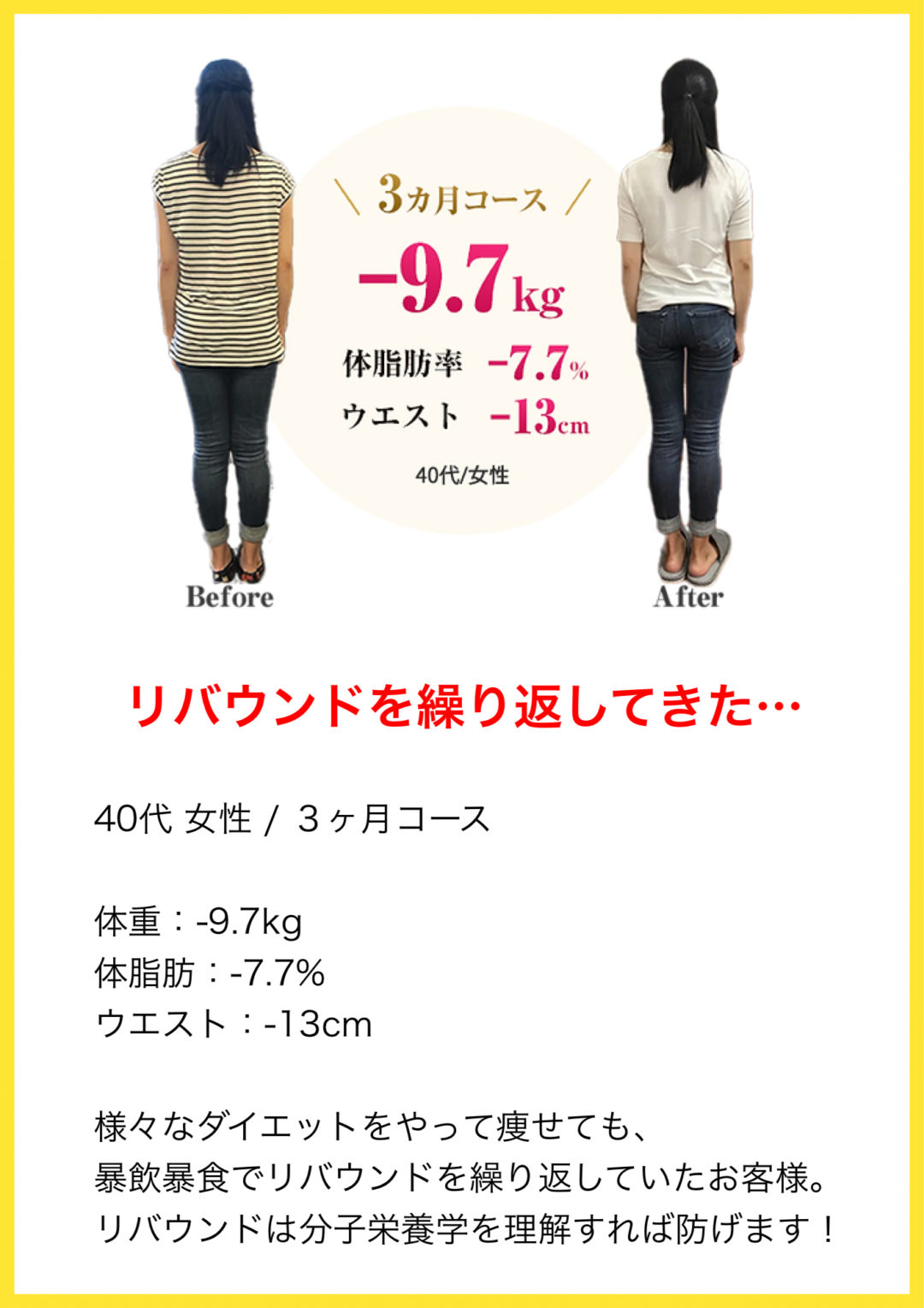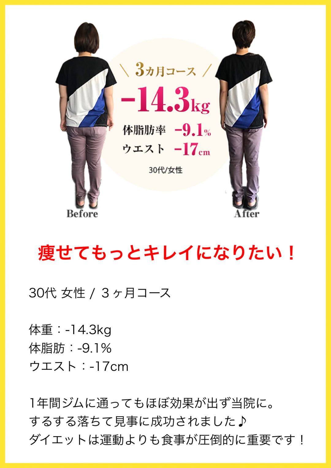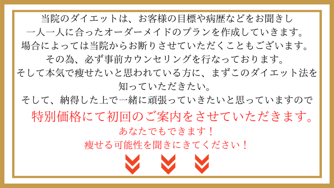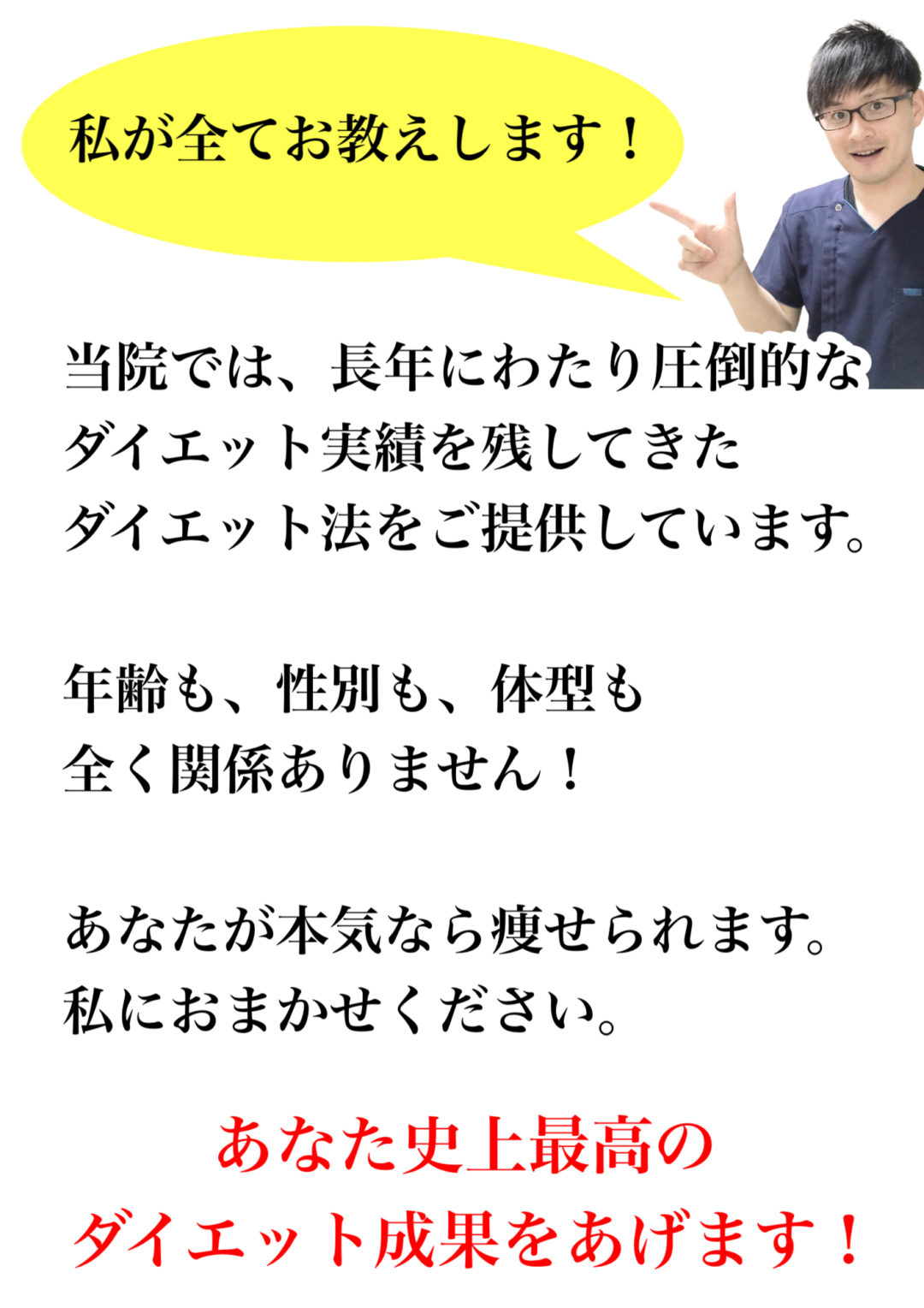 ダイエットを諦めていた方、何をやっても変われなかった方の、 最後の砦となれるよう、お一人お一人に真剣に向き合っていきます。