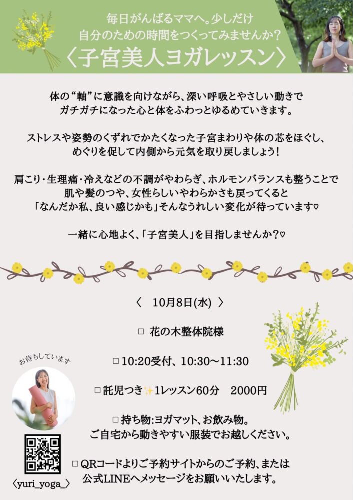 花の木整体院様にて子宮美人ヨガレッスンを開催させていただきます☺️